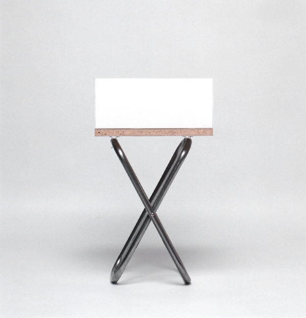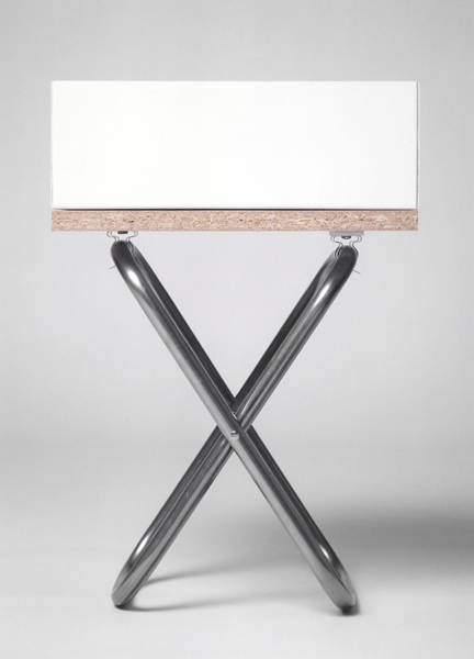 Visning, 1996, 42,5 x 29 x 22 cm, stålrör, spånskiva,pvc, skruvmejslar